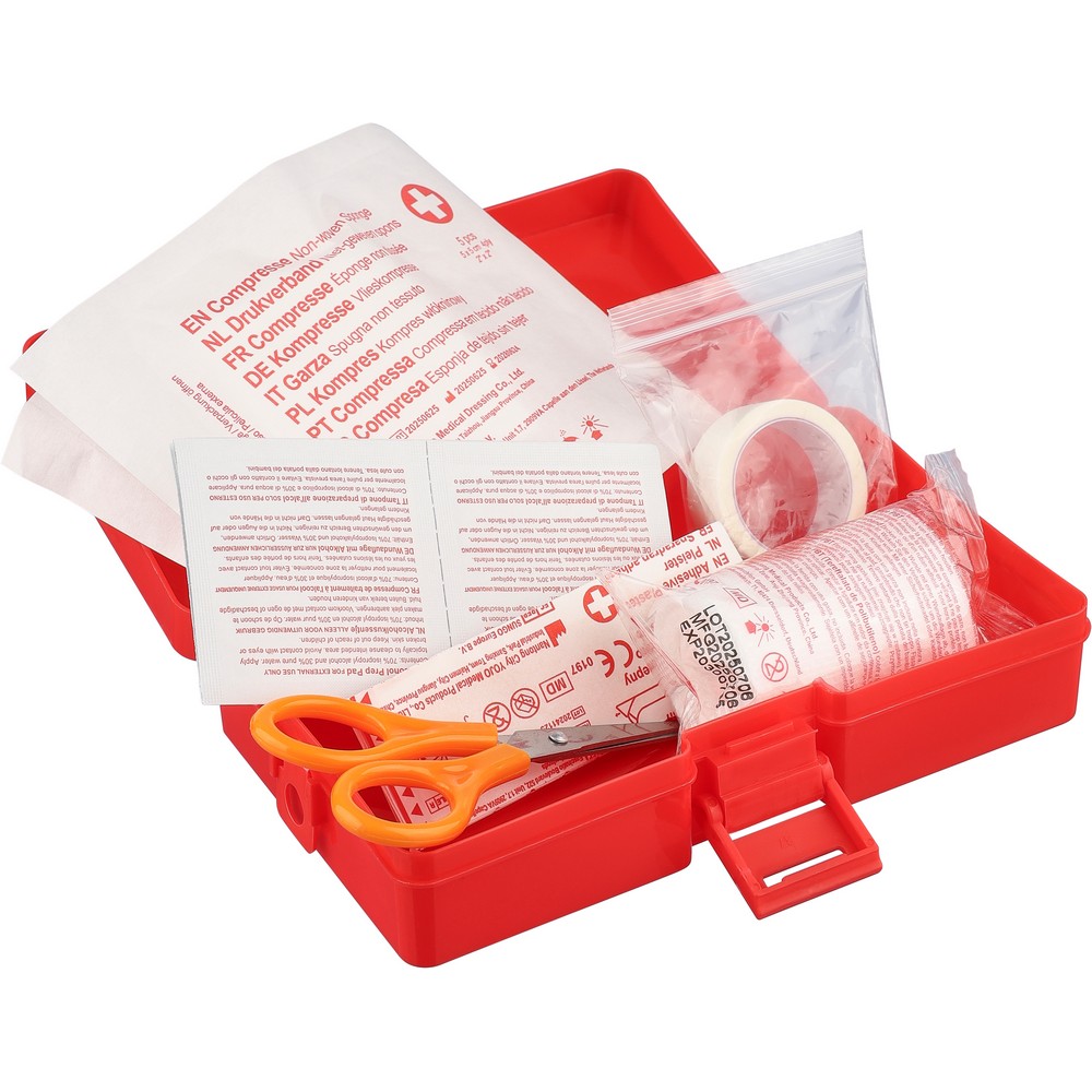 Entdecken Sie das hochwertige Erste-Hilfe-Set – der ideale Werbeartikel für Unternehmen, die ihre Markensichtbarkeit steigern möchten. Mit einem kompakten Format von 14,7 x 8,5 x 3,5 cm und einem leichten Gewicht von 62,9 g ist es der perfekte Begleiter für jedes Zuhause, Büro oder unterwegs. Jedes Set enthält essenzielle Hilfsmittel wie Bandagen, Scheren und Desinfektionstücher, die im Notfall sofort zur Hand sind.